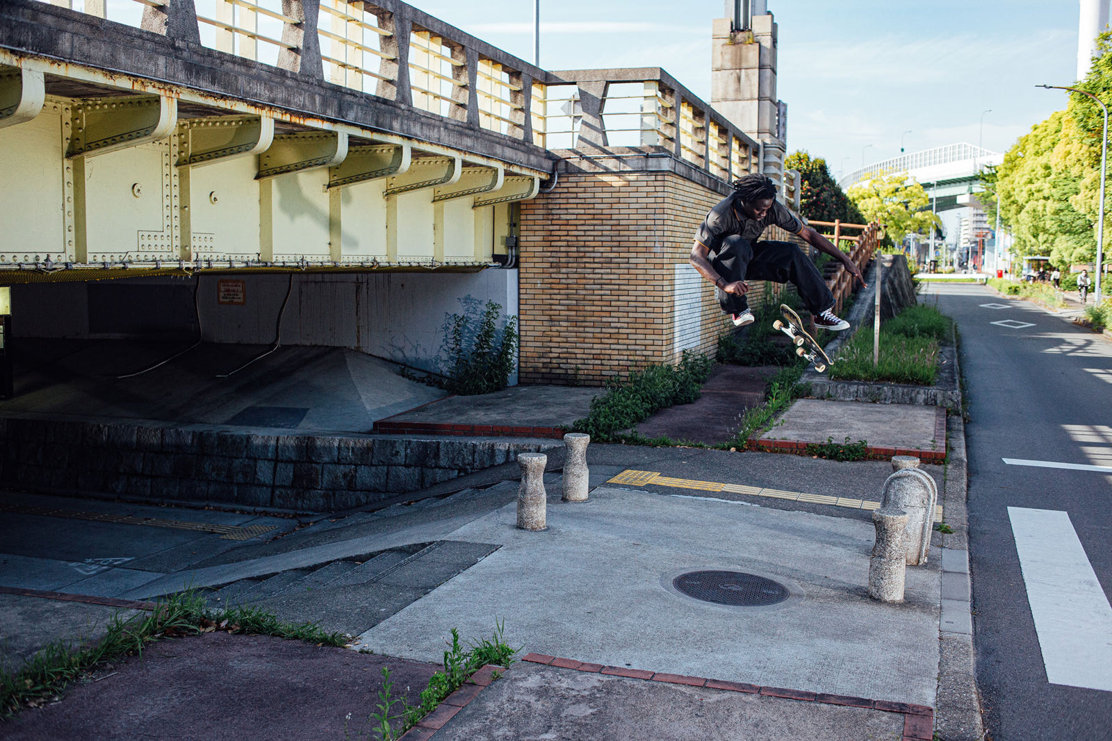“This guy is a modern version of Sean Sheffey”, Pontus once said before putting Ebou on the team. And in fact, you can see similarities in their skating right away, both possess mind-blowing pop. A funny note: Ebou admitted watching Sean Sheffey videos a lot as kid but didn’t remember his name for a long time. To do the full circle, he interviewed his idol for his guest-editor issue of SOLO Skateboard Magazine in 2024. Not only is Ebou a magazine editor and a former Catalonian youth academy futsal player, but he also has a sketchbook full of impressive art. It’s clear that the Barcelona local is talented in many different areas. On top of that, he has excellent taste in music. If he’s connected to the speaker, you’ll find yourself Shazaming a song every day.